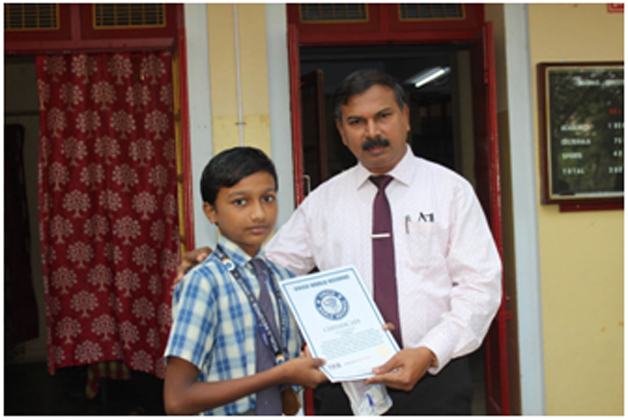 Mas. Koushik Lingesh of 12S3 participated in the CM Trophy – Athletic Meet. He took part in 200mts running and got the 1 st position. He was awarded a certificate, medal and a cash prize of Rs. 1,00,000 |