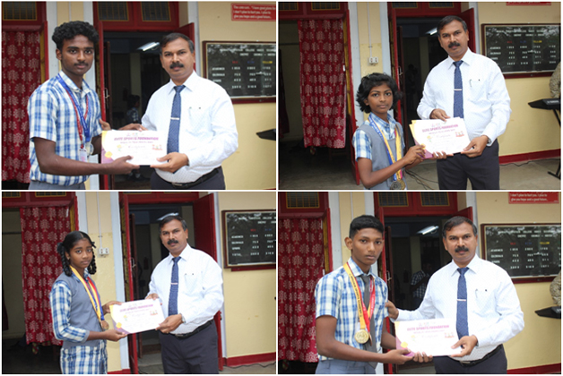 Divakar from class 11F2 represented his football club in Germany, while Sharon Shepherd from class 12F1 won ₹75,000 at the CM Trophy football match, bringing pride to her school. Mr. Jeba Singh, the football coach, received the Best Coach award for his contributions after the team's success at the state tournament. |