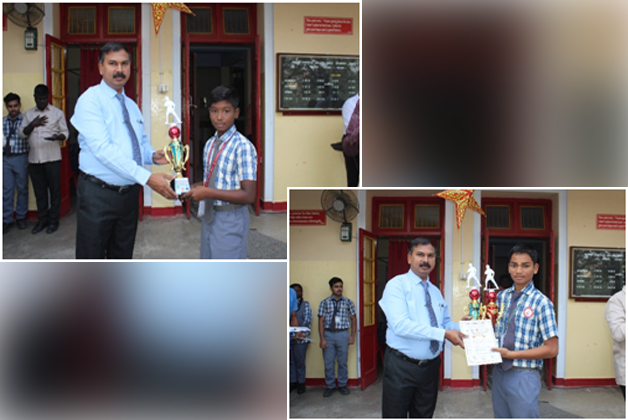 Master Gowshik Lingesh of 12s3 took part in the Bharathiar Day/Republic Day state level sports and Games organized by school Education Department and won the second place in 200m and Third place in 100m under 19 boys category at VOC park stadium,Erode. |