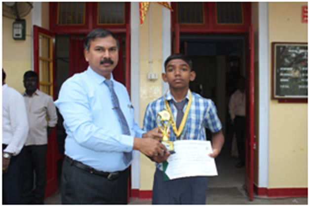 Mas. Sarvesh of 12F2 participated in the CM Trophy – Football tournament. He represented the Chennai district and Chennai district won the tournament. He was awarded a certificate, medal and a cash prize of Rs. 75,000 |